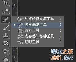 选中修复画笔工具,没有画笔工具的请继续往下看
