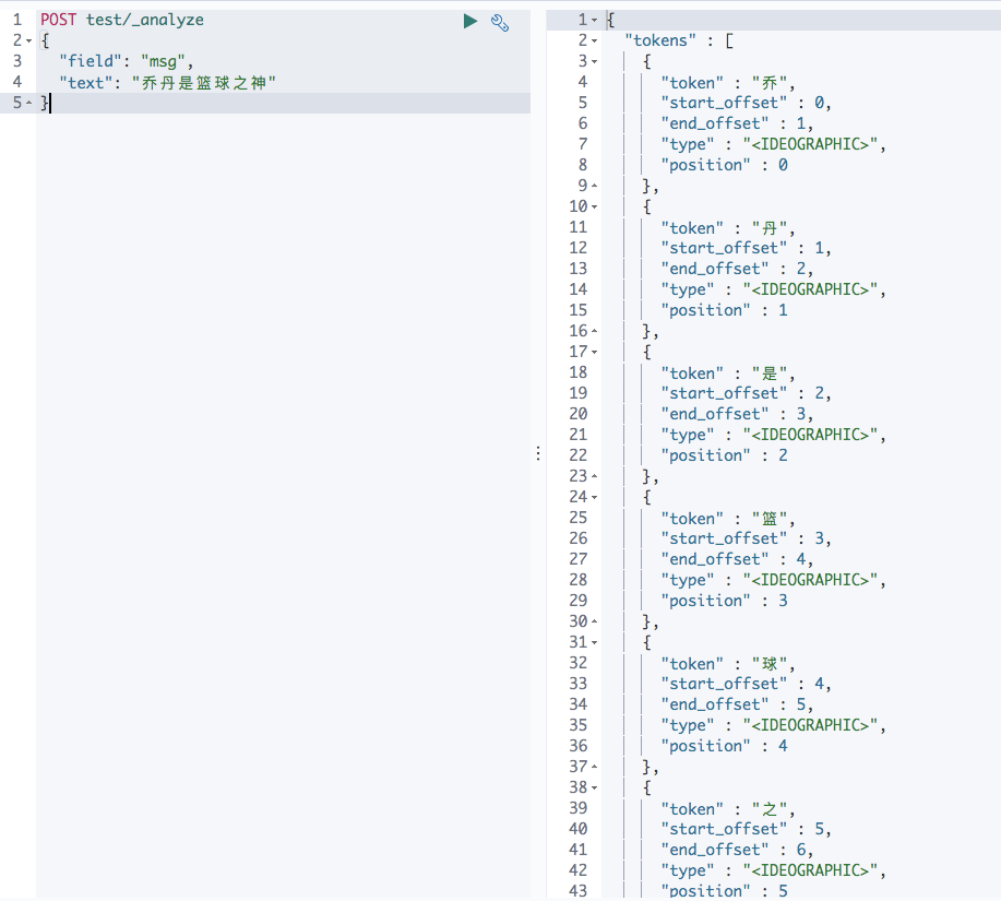 - 我们使用来分析这个msg这个字段是怎样分词的