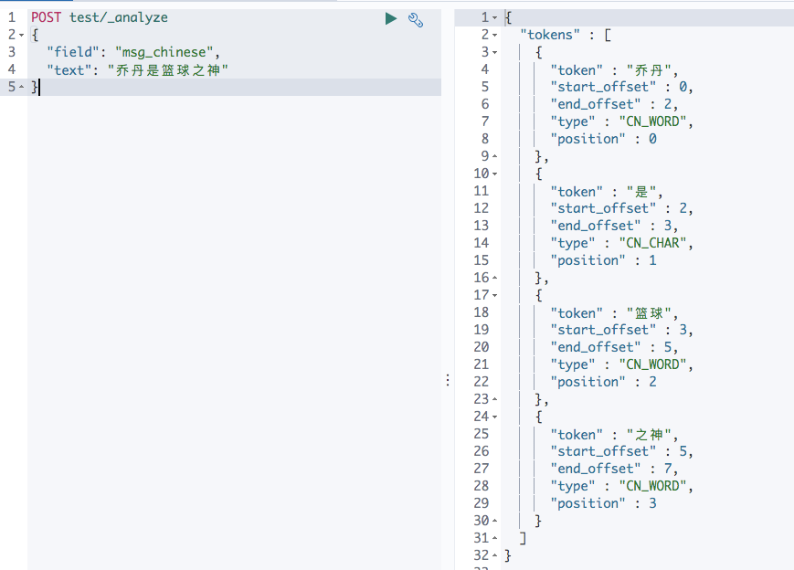 - 我们来试下使用中文分词器(安装分词过程省略)