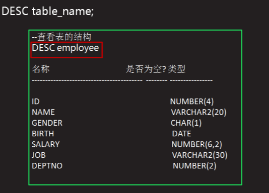 DESC语句:查看表结构