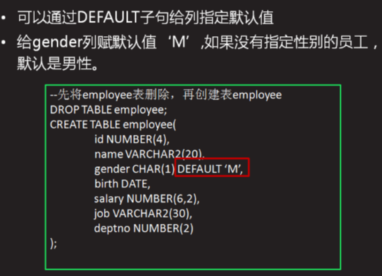 ALTER TABLE myemp MODIFY(job VARCHAR2(40) DEFAULT 'CLERK');