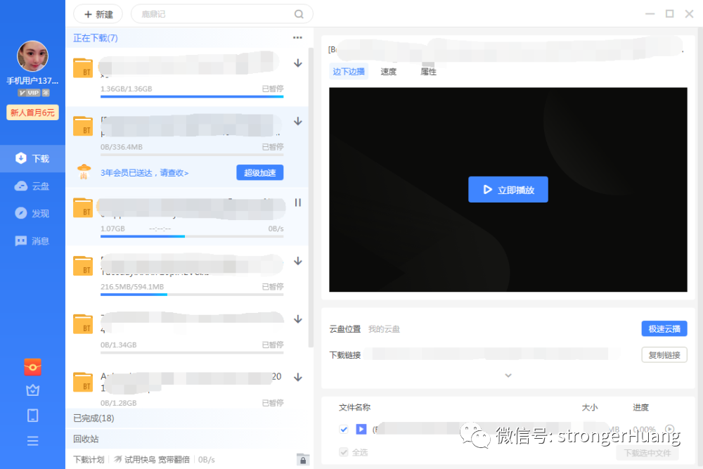 360这波操作无疑是成功的,很快,迅雷、115、百度云等也推出了类似的模式,冲会员送空间。在当时,360是绝对的网盘大头,而百度盘怎么看都像是山寨的360盘,下载速度还行,它会随机让你体验若干分钟的VIP提速特权,你基本都可以在体验期间下载完你的文件。但当时的腾讯的网盘就丢人了,速度最快也只有百度盘VIP的五分之一。当时我家有2 MB/s的峰值下载速度,我的腾讯云盘只有250 KB/s的速度,而且还是VIP速度。