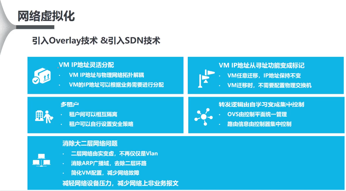 基于Overlay技术,海量的租户被隔离开,所有的租户都是运行在这个网络之上;