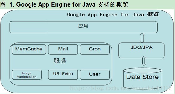 Datastore:分布式数据存储和查询服务。Java版则提供了标准的JDO和JPA这两套API。底层存储机制就是它的 Big Table,