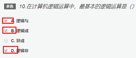 10.在计算机逻辑运算中,最基本的逻辑运算是(ABD)