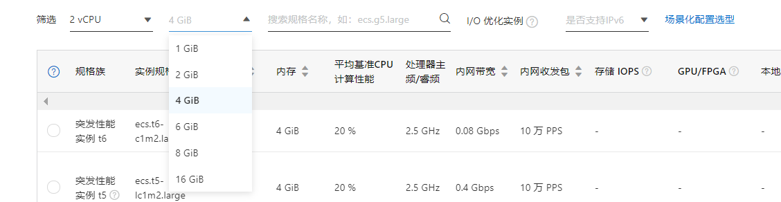 这里就可以选择阿里云所有的型号了,不再局限某种型号。