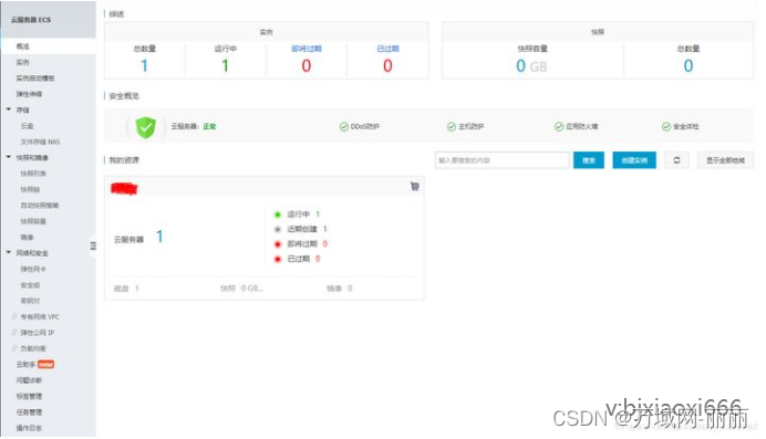 第三步:点击左侧实例选项--然后上方地域选所开服务器的地方就可以看到我们的服务器了,在这里可以对服务器进行管理。