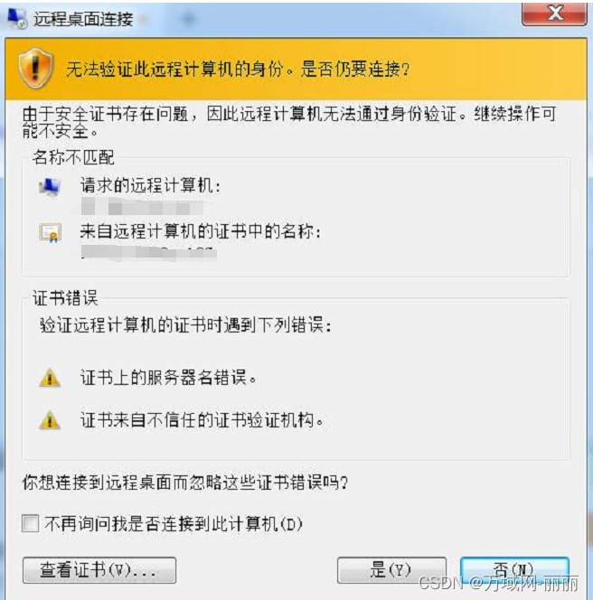 点击确定后会弹出这样一个对话框,大家就不知道该点哪里了,这里跟大家说一下,点击“是”即可。连接上服务器后就可以使用啦,需要安装什么软件下载什么就可以了。