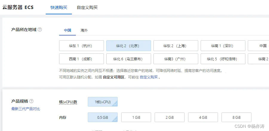 1.快速购买只有cpu最高只能选8核,内存最高只能选择8G,适合个人和一般普通企业用户。