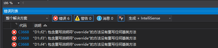 - 一个派生类必须在其类体中声明所有其需要定义的虚函数。 C++11 新标准允许派生类显式地指出哪个成员函数是重写基类中的虚函数,具体的方法是在派生类函数的形参列表之后增加一个 override 关键字