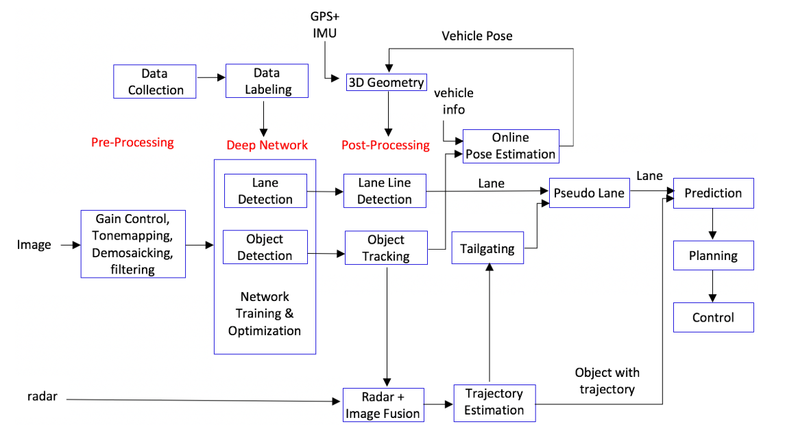 Apollo 3.0 主要针对采用低成本传感器的L2级别自动驾驶车辆。在车道中的自动驾驶车辆通过一个前置摄像头和前置雷达要与关键车辆(在路径上最近的车辆)保持一定的距离。Apollo 3.0 支持在高速公路上不依赖地图的高速自动驾驶。深度网路学习处理图像数据,随着搜集更多的数据,深度网络的性能随着时间的推移将得到改善。
