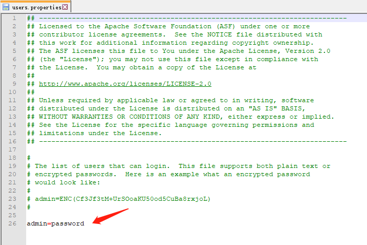 这个可以在mybrokeretc下的users.properties文件中修改,是以键值对的方式存在的,如果有多个用户可以换行再来一个哦。