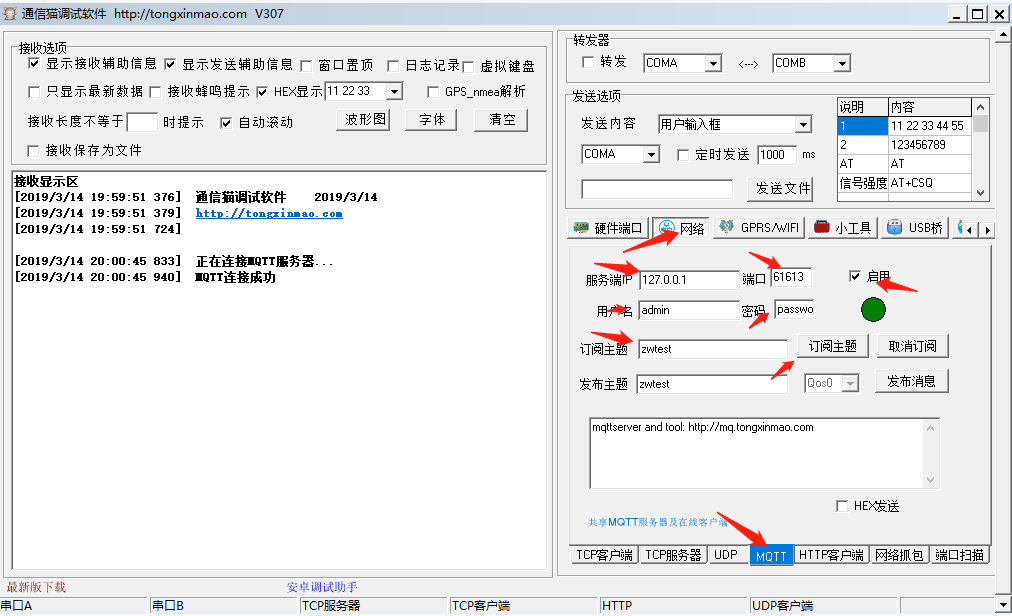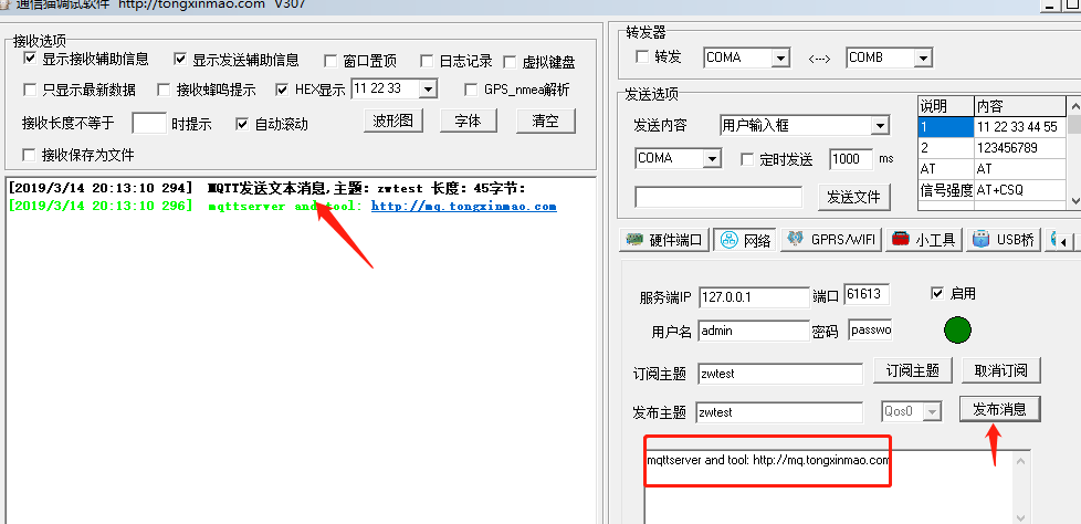 之前说过我的目录下有测试软件,一个是通信猫的,一个是paho的。我都启动大家看看