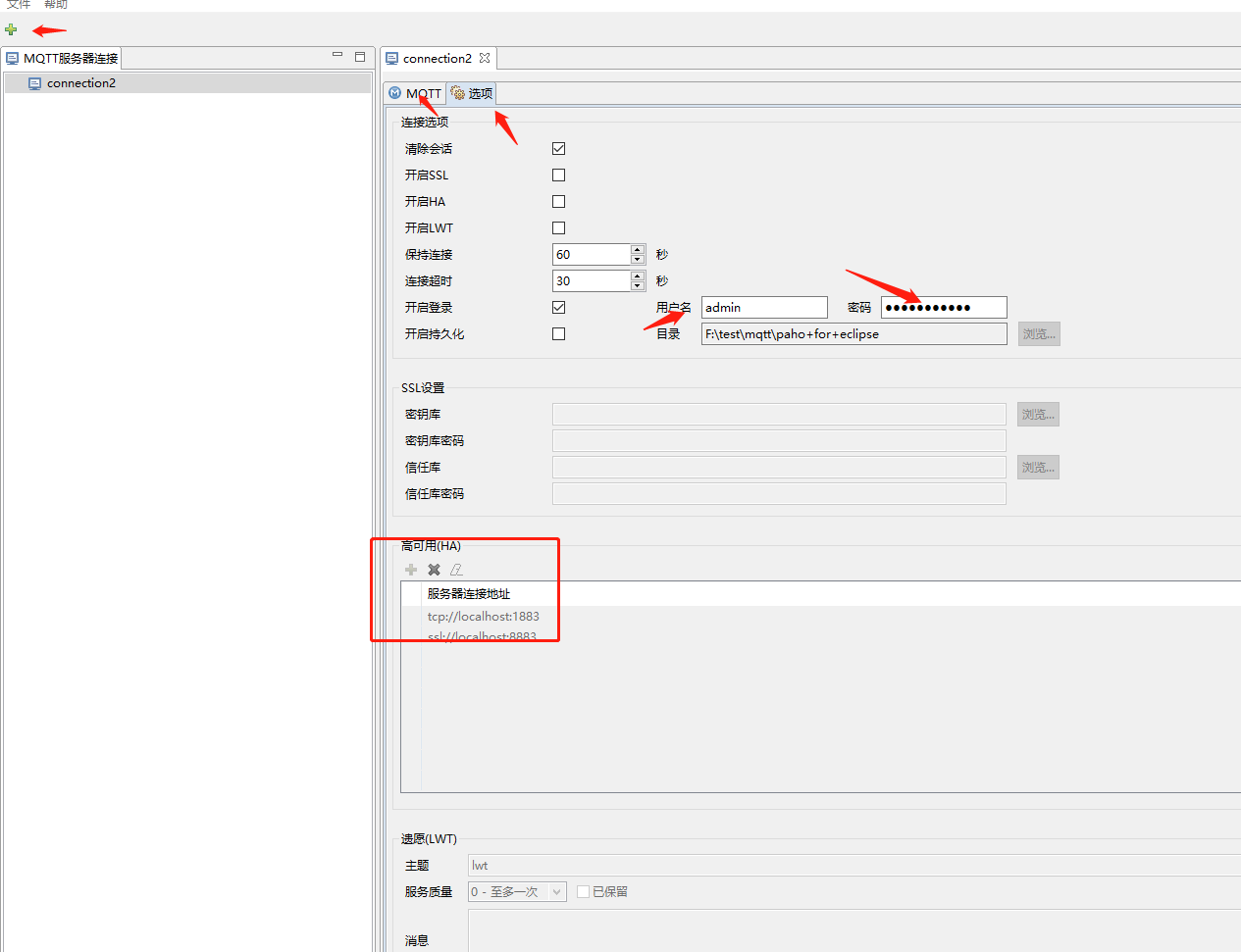框框里的是可以输入服务器下次记住的。其他的我就不解释了,ip在MQTT这个tab页设置。