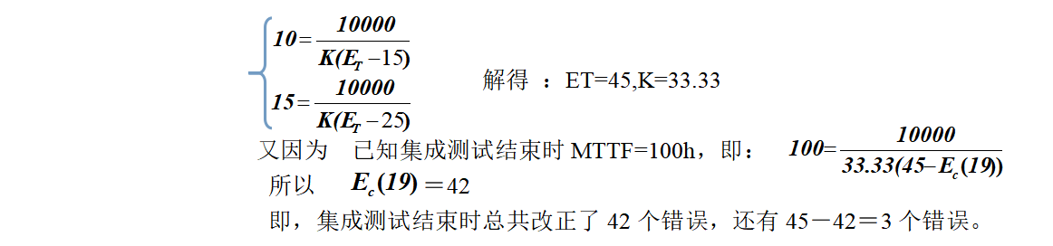3)例 对一个包含10000条机器指令的程序进行一个月集成测试后,总共改正了15个错误,