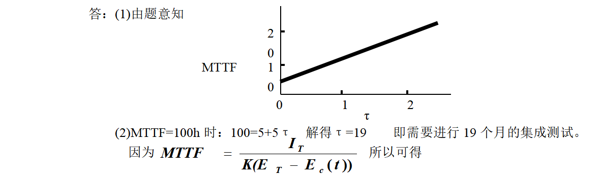 要求:(1) 根据上述数据确定MTTF与测试时间之间的函数关系,画出MTTF与测试