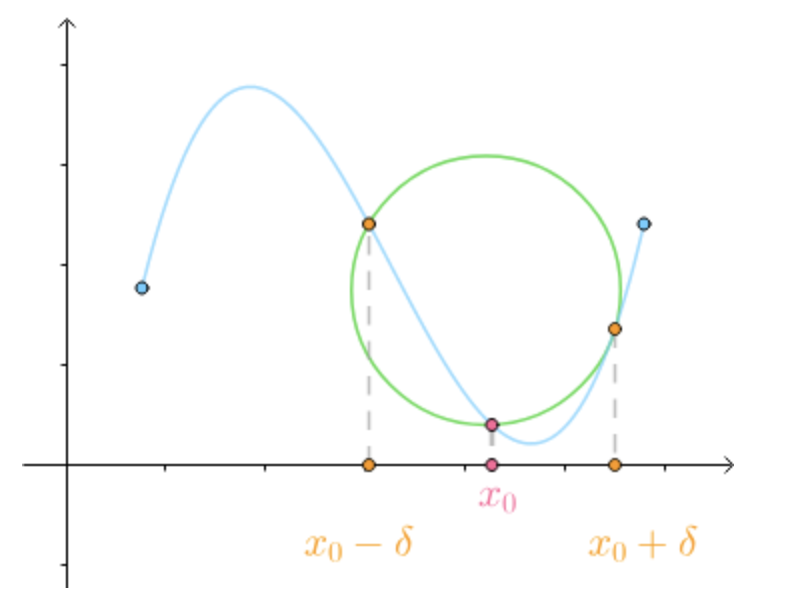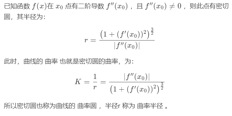 当δ 趋近于0时,我们可以的到曲线在x_0x0处的密切圆,也就是曲线在该点的圆近似:
