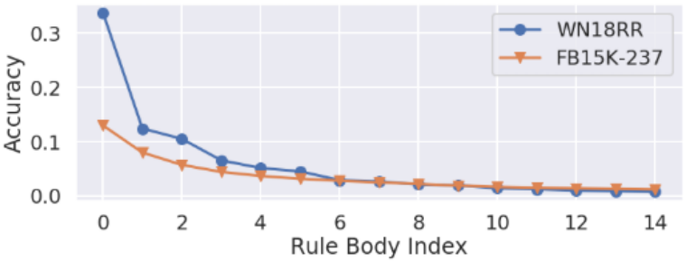 图1:数据集之间的规则质量差异。 WN18RR存在高质量的规则。