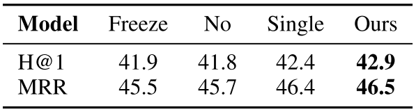 表3:Freeze, No and Single代表具有冻结的预训练关联试剂,没有预训练且没有分离试剂的模型。