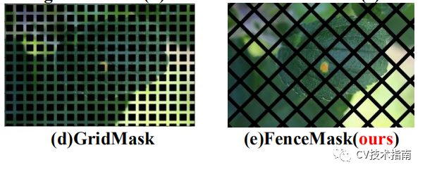 该方法是对前面GridMask的改进,认为使用正方形的掩码会对小目标有很大的影响。因此提出了更好的形状,FenceMask具有更好的细粒度。