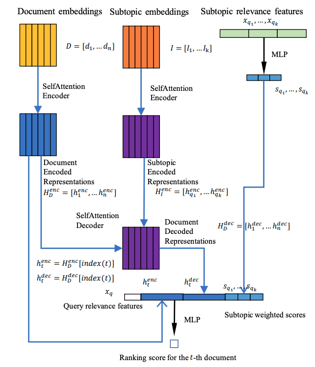 概述:搜索结果多样化的目标是使得检索得到的结果能够尽量覆盖用户提出问题的所有子话题。已有的多样化排序方法通常基于贪心选择(Greedy Selection)过程,独立地将每一个候选文档与已选中的文档序列进行比较,选择每一个排序位置的最佳文档,生成最后的文档排序。而相关研究证明由于各候选文档的边际信息收益并非彼此独立,贪心选择得到的各个局部最优解将难以导向全局最佳排序。本文介绍了一种基于自注意力网络(Self-Attention Network)的方法,可以同步地衡量全体候选文档间的关系,以及候选文档对不同用户意图的覆盖程度,有效地克服原有方法受限于贪心选择过程的局限性,并在TRECWebTrack09-12数据集上获得更好的性能。