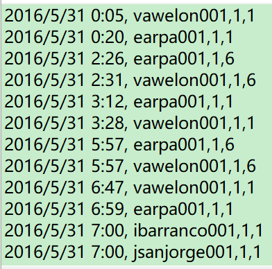 那么在第一列的是传感器获取数据的时间,第二列是传感器的编号,第三列是传感器所在的楼层,第四列是传感器所在位置的区域编号。