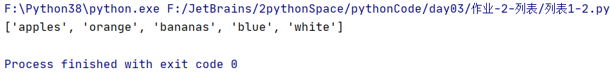 list = ["red", "apples", "orange", "pink", "bananas", "blue", "black", "white"]
