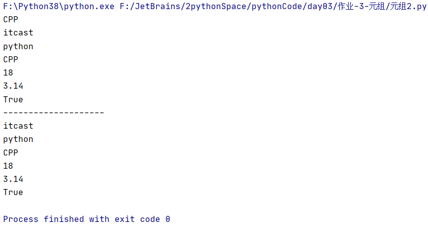 my_tuple = ("itcast", "python", "CPP", 18, 3.14, True)