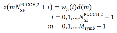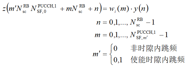 由表TS38.211 Table6.3.2.4.1-1给出,其中i是正交序列的索引,当参数 format 指示 PUCCH-format1 时,由PUCCH资源集中的参数 timeDomainOCC 给出(TS38.213 Clause9.2.1)。如果PUCCH传输跨多个时隙,复值符号d(0)在后续的时隙上重复。
