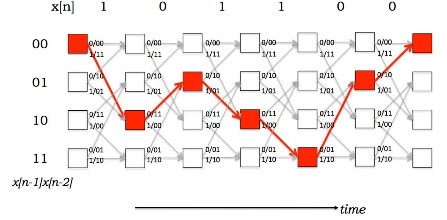 这意味着软判决译码器产生与接收的电压序列相对应的最大似然路径。