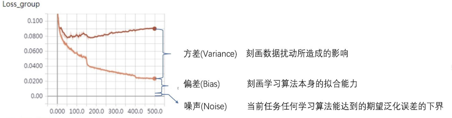 噪声:表达了在当前任务上任何学习算法所能达到的期望泛化误差的下界;