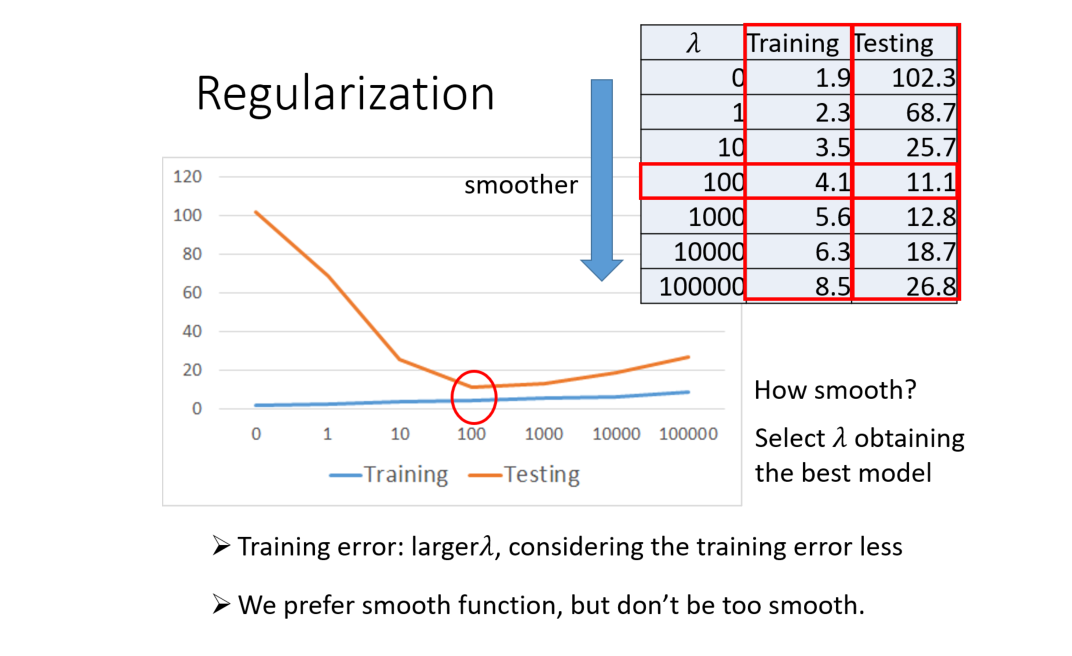我们喜欢比较平滑的function,因为它对noise不那么sensitive;但是我们又不喜欢太平滑的function,因为它就失去了对data拟合的能力;而function的平滑程度,就需要通过调整 来决定;
