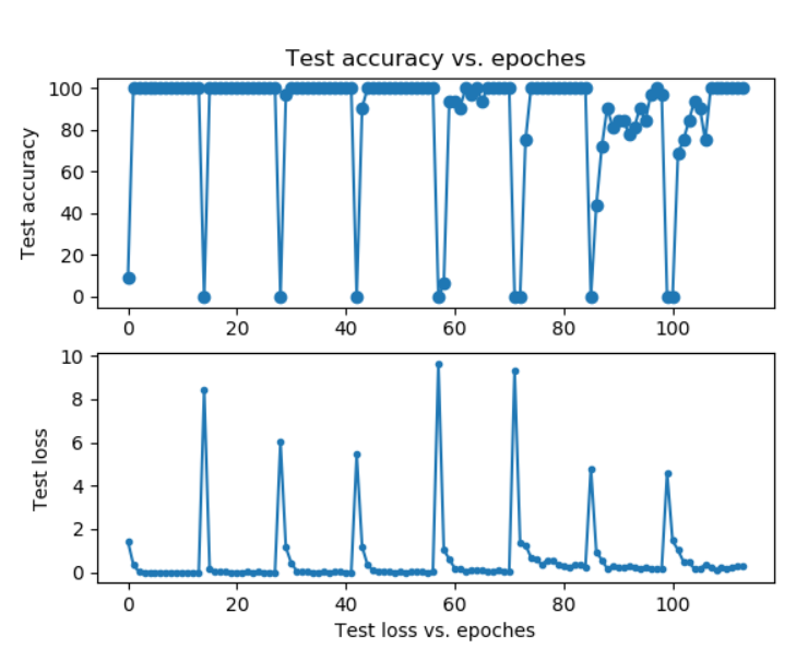 训练过程中Loss和accuracy的曲线这样(横轴是每10个bactchsize输出一次)
