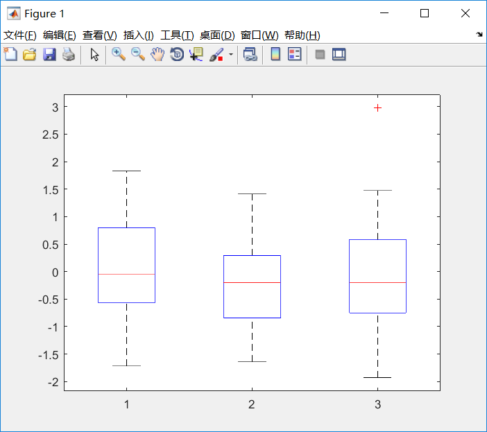 boxplot(randn(30,3));