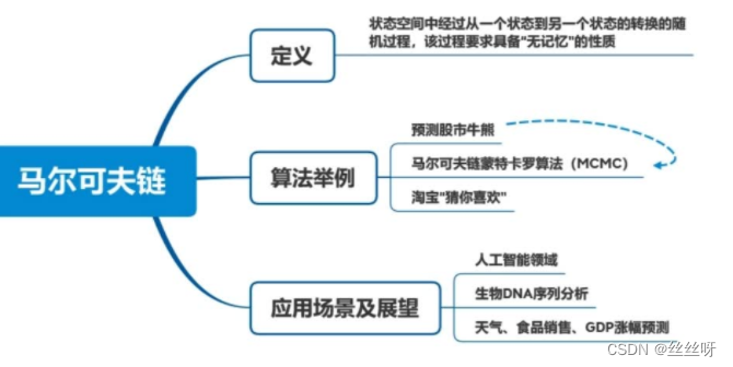 找到内部运行规律,从而预测当这一系列事件达到平衡的时候,当前状态的下一步最可能发生的情况。(用途:天气预测、食品销售预测、GDP涨幅预测、企业人员变动预测……)预测结果的好坏依赖于概率转移矩阵是否准确,概率转移矩阵的准确性依赖于算法评估方法的合理性。