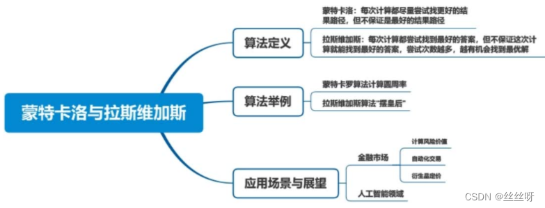都是利用随机的方法来简化整体的算法。蒙特卡洛算法:每次计算都尽量尝试找到更好的结果路径,但不保证是最好的结果路径,时间越久、尝试越多,最终越接近最优解。(100个苹果,每次次取两个比较,找到最大的那个)。拉斯维加斯算法:每次计算都尝试找到最好的答案,但不保证这次计算就能找到更好的答案,尝试次数越多,越有机会找到最优解。(1把锁,100个钥匙,依次开锁)。