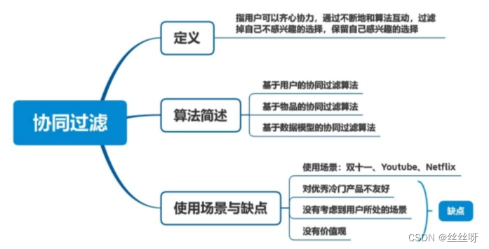 常用在推荐系统。基于用户的协同过滤算法就是基于用户和用户之间的相似性,推荐你喜欢的东西,过滤掉不喜欢的。基于物品的协调过滤算法是根据用户群对于物品的购买或者评价发现物品和物品之间的相似程度,然后再根据具体用户历史使用的类似物品推荐给这个用户。基于数据模型的协调过滤算法,可以复用前面所学到的算法,先做出来模型,再进行相关的协调过滤。