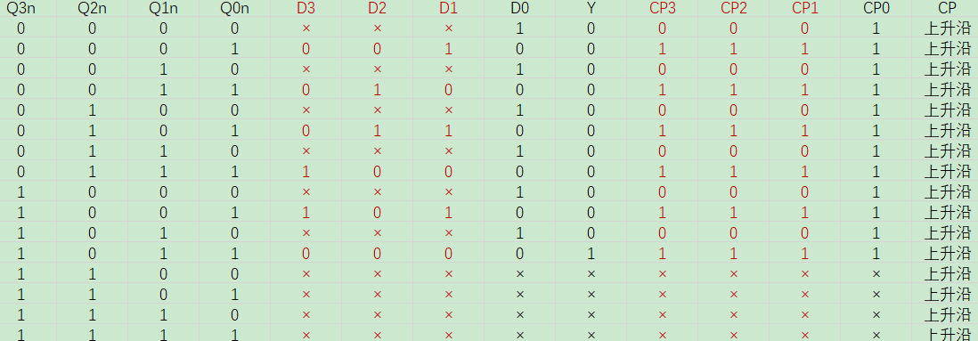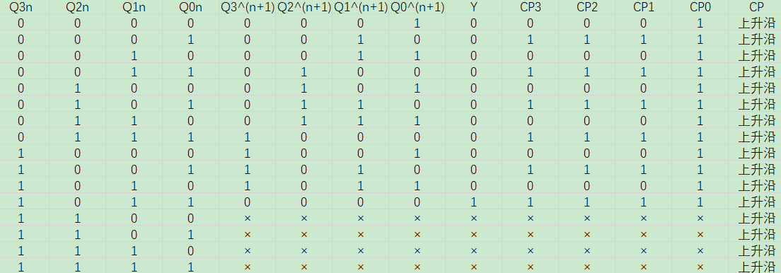 Q2^(n+1)=D2=Q2n·Q1n'+Q3n'·Q2n'·Q1n, Q0下降沿时刻有效;