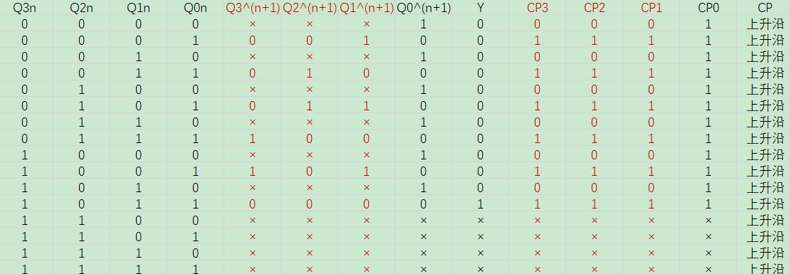 (4)根据"CP=0的次态用×代替"这一原则, 再次修改状态表: