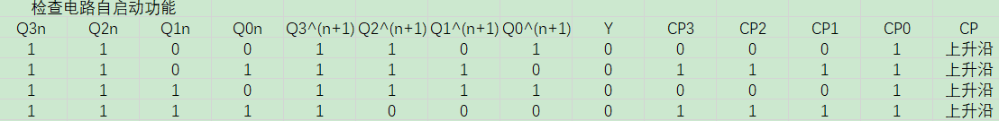 由无效状态的状态表, 可以得到 1100->1101->1110->1111->1000, 所以电路具备自启动功能.