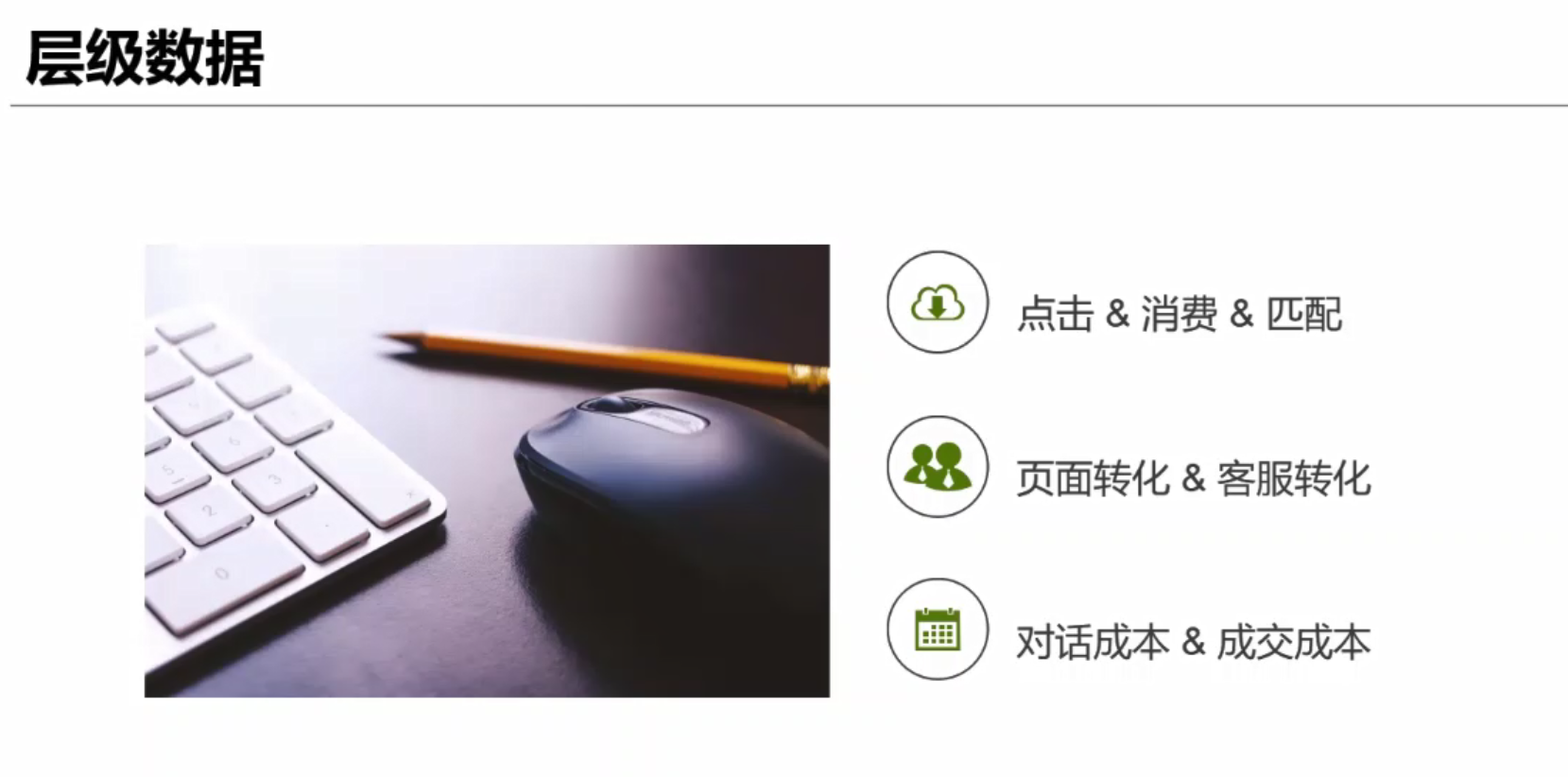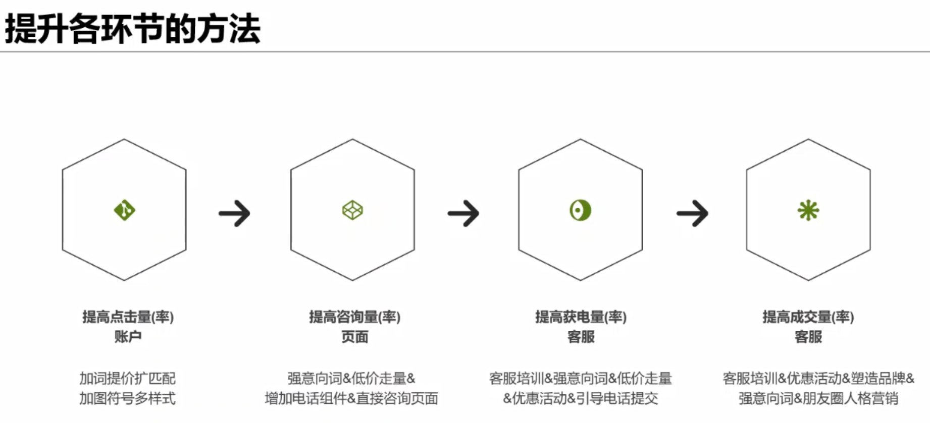 原始的模型是展示、点击、转化;层层递进,漏斗模型。之前的互联网现状是这样的。先进入页面,然后客服咨询。现在我们的要求是直接转化,客户点击我们,直接提交表单,发询盘,打电话。做到精准触达,已经没有多余的钱去测试,机器模型运行好之后,漏斗模型逐渐变为圆柱形模型。