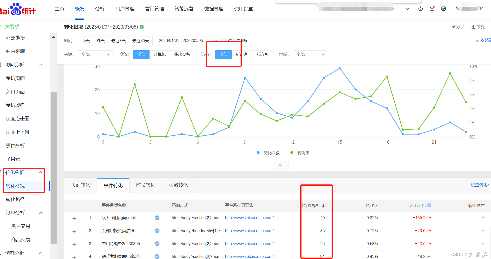 第二,尽管这数据是虚的,但是一定程度上也能间接验证我们某一个网页页面的咨询按钮或者某一个位置的事件转化数量值。
