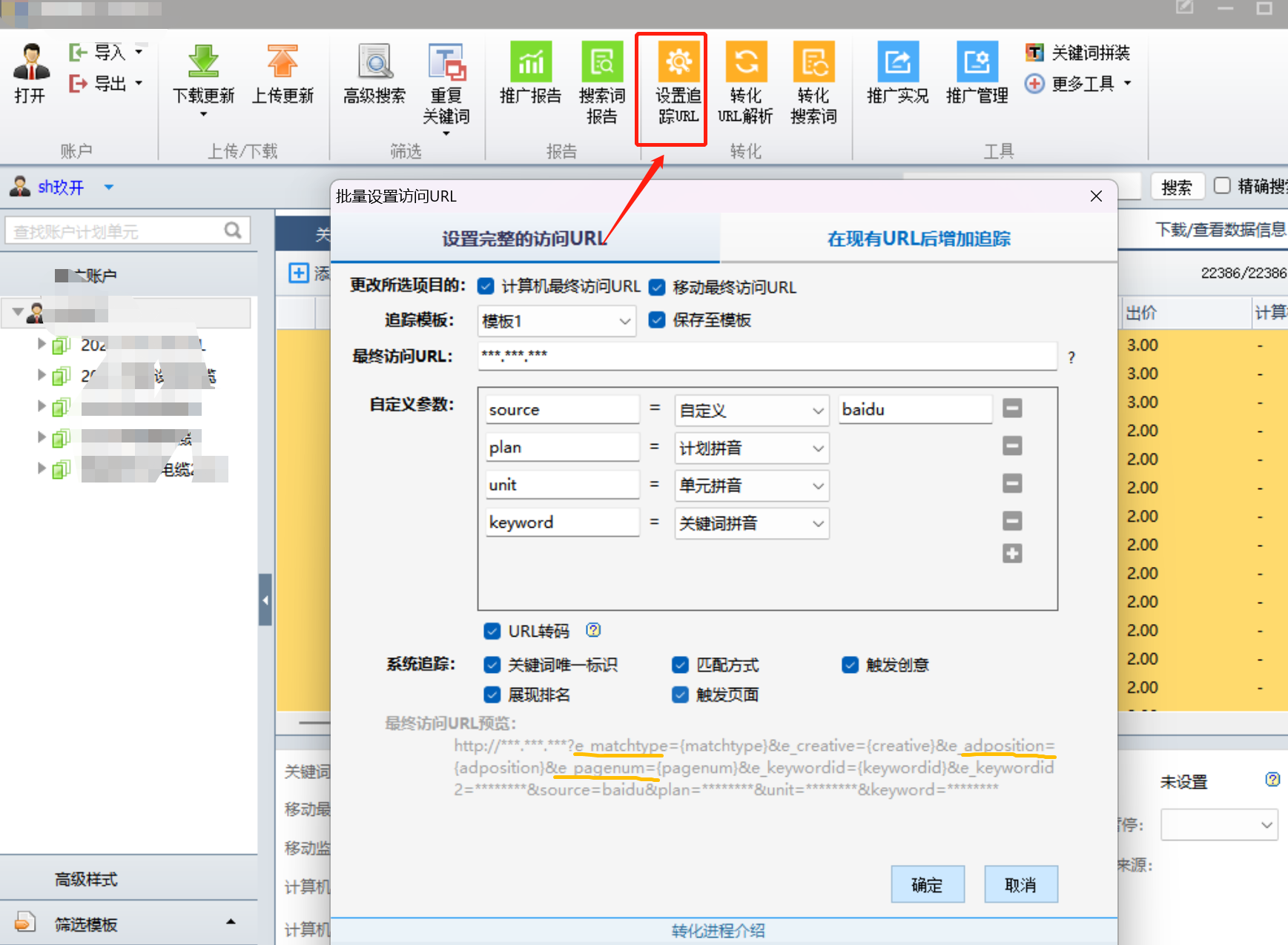 1、如何给关键词添加标记(注意标记的时候,最终访问的URL的填写)