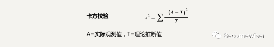 卡方检验,用于统计样本的实际观测值与理论推断值之间的偏离程度,如果卡方值越大,实际观测值与理论推断值偏差程度越大。