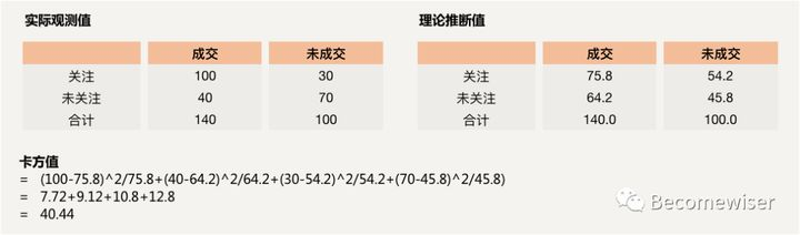 2)计算实际观测数据及理论推测数据将关注及成交的相关数据进行统计,可得出下表: