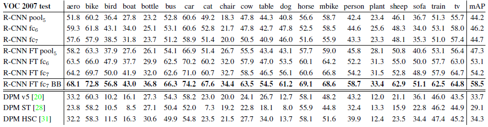 This result shows that it’s possible to obtain close to the same level of performance without training SVMs after fine-tuning. We conjecture that with some additional tweaks to fine-tuning the remaining performance gap may be closed. If true, this would simplify and speed up R-CNN training with no loss in detection performance.