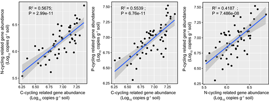 Fig. 2 The relationships between the C, N and P cycling microbial populations.