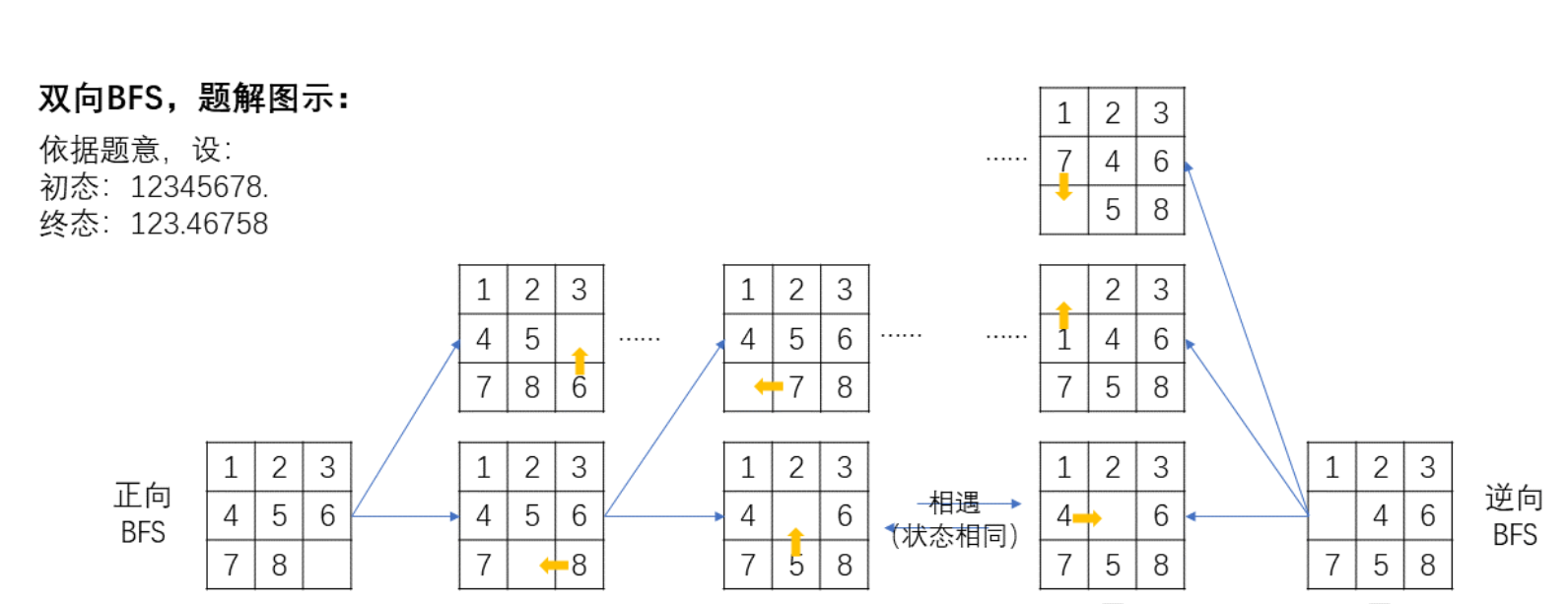 单向虽然可以,但是速度比双向慢。因为随着递归的深度变深,每走一步要尝试更多种走法,双向bfs利用的就是两边同时走,在方向不同但是图案相同的点相遇。