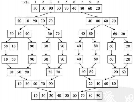 如:无序数组序列{50, 10, 90, 30, 70, 40, 80, 60, 20}
