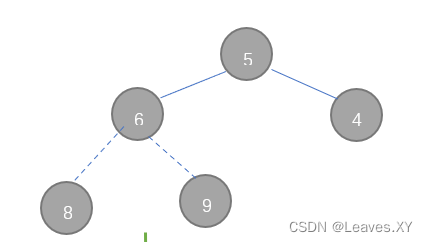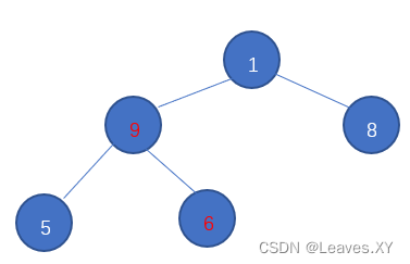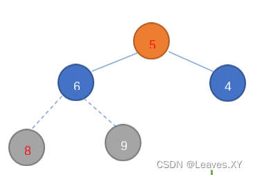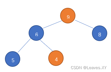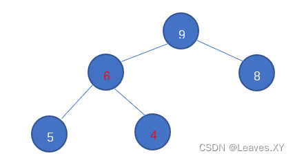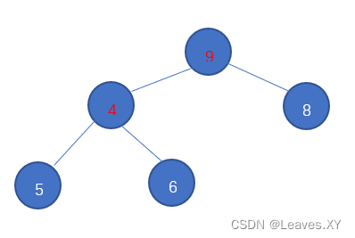 - 找到第二个非叶节点4,由于[4,9,8]中9元素最大,4和9交换。